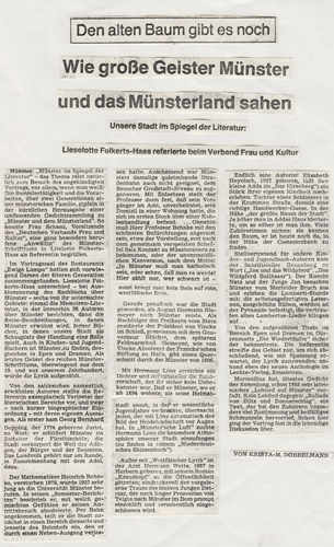 - Bedeutende Frauengestalten in Münster anlässlich des 1200jährigen Jubiläums der Stadt Münster vor dem Deutschen Frauenring im Festsaal des Tibus-Stiftes.